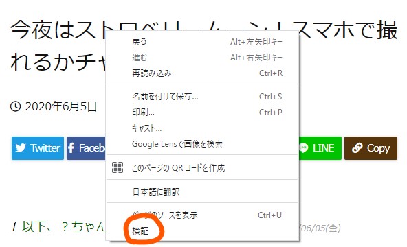 パソコンからGoogleChromeを開いて、「スタイルシートを編集したい箇所」を右クリックします。