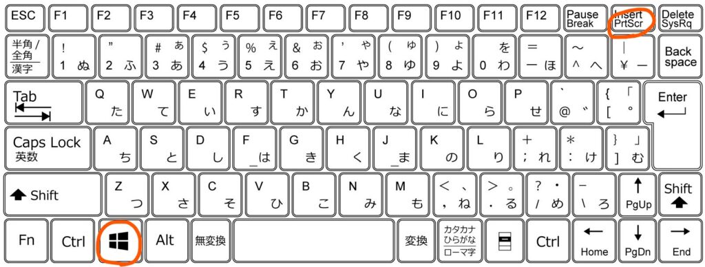「Windowsボタン」+「PrintScreen(Prt Scr)」